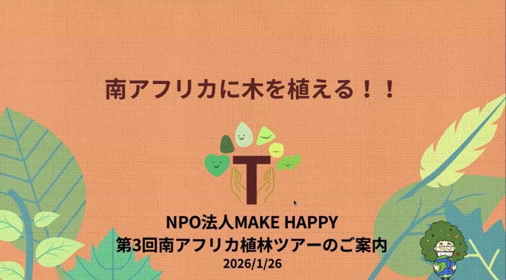 https://www.makehappyearth.com/ 「南アフリカに木を植える」という活動のシェアをいただきましたが、なぜ南アフリカなのか?という話に少し驚きました。